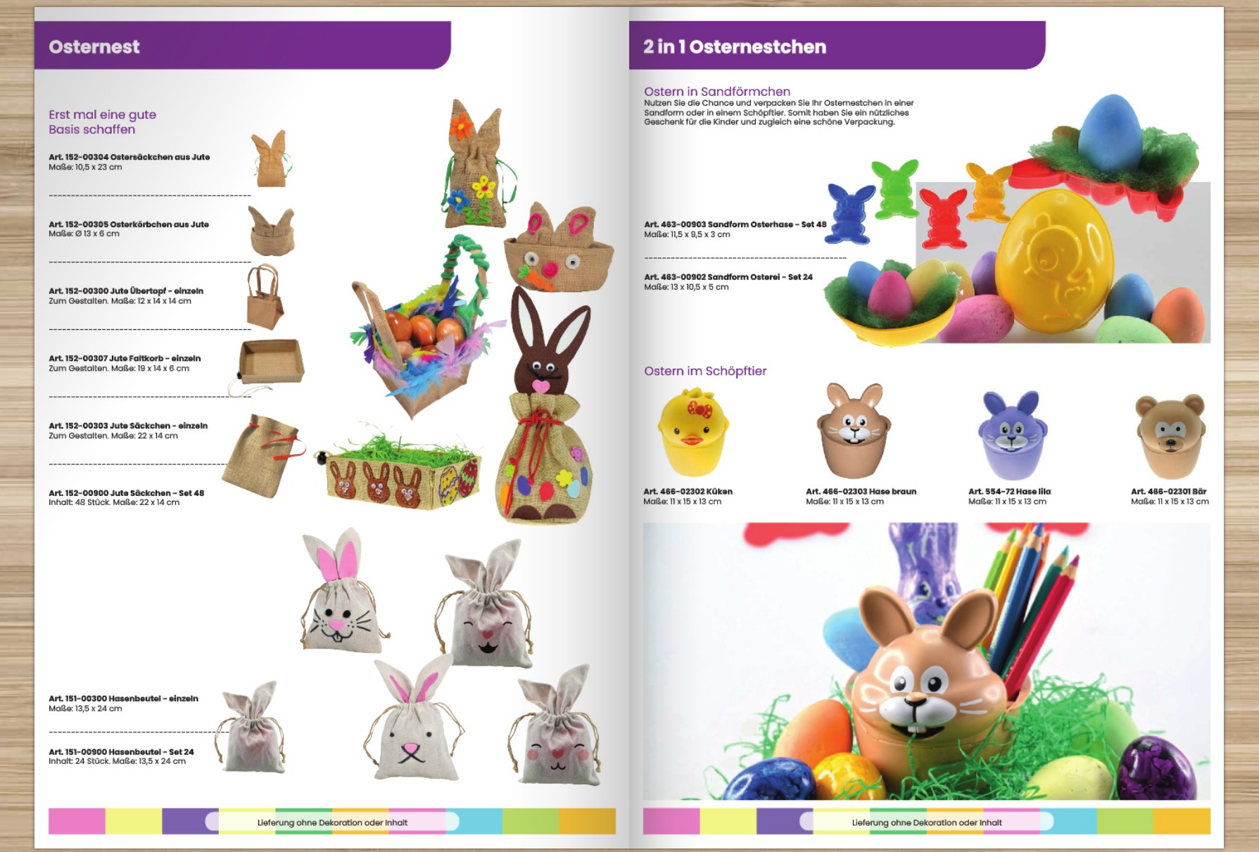 Unser Ziel ist es, junge Menschen dabei zu unterstützen, zu kreativen Gestalterinnen und Gestaltern heranzuwachsen und ihre Freude am Tun zu kultivieren. Das spiegelt sich in unseren Produkten wider: Unsere langjährige Erfahrung bei der Ausstattung von Bildungseinrichtungen hilft uns dabei, genau die Produkte und Gestaltungsmöglichkeiten anzubieten, die bei Kindern verlässlich für leuchtende Augen sorgen. Unser Sortiment umfasst Kreativ- und Bastelmaterialien für alle Anlässe - ob Geschenke oder Dekorationen zu Ostern, Weihnachten, Mutter- oder Vatertag, Laternenfest – oder für individuelle Kindergeschenke.